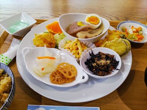 道の駅上矢作ラ・フォーレ福寿の里でランチをいただきましたの備忘です。 川沿いに面したゆったりソファで、地元お母さんの味を堪能。 癒されるー。。。